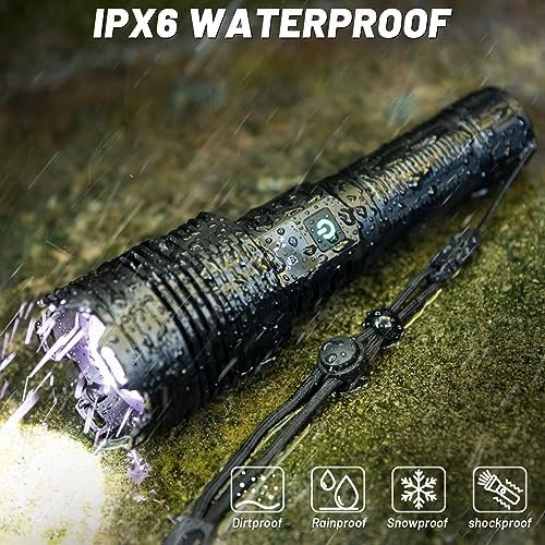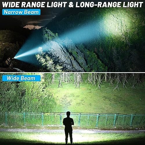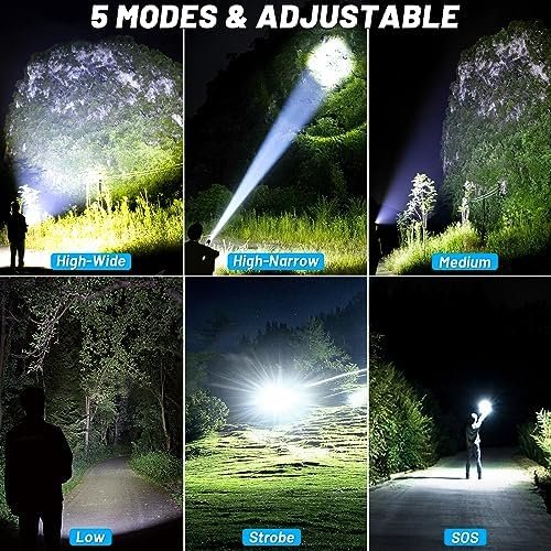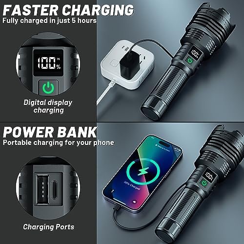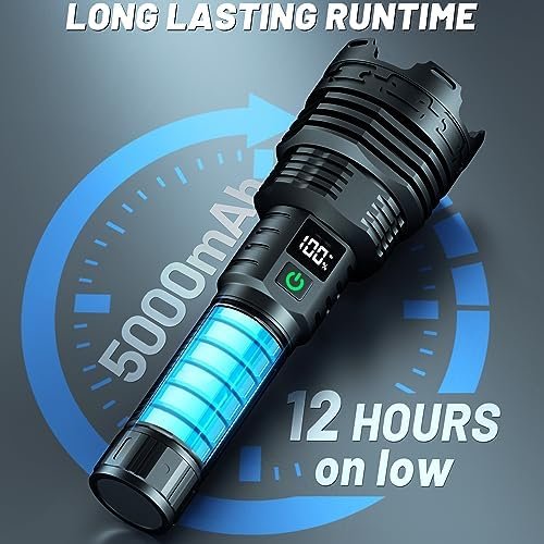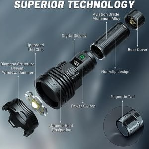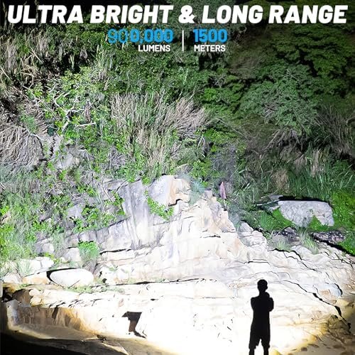 🔦[Unmatched Brightness] – With 990,000 lumens. This rechargeable high lumens flashlights is the brightest on the market, providing unparalleled visibility in any situation.This super bright flashlight is about 50% brighter, so please avoid direct eye contact.