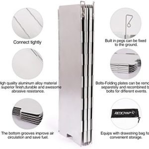 STURDY: REDCAMP stove windshield has 10 removable plates to fit different size of stove and high quality aluminum alloy material with superior finish, durable and abrasive resistance.