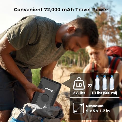 【72000 mAh/266 Wh Enormous Capacity】Provides extended runtime for charging up to 5 devices simultaneously. Advanced battery management system ensures efficient and safe charging, achieving up to 90% conversion rate. (*Note: Not TSA-approved for air travel.)