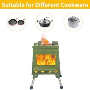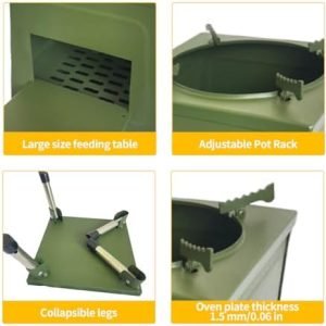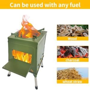 Portable wood burning stove is lightweight and sturdy. Thanks to the collapsible design and high combustion efficiency, this stove can be adapted to different cooking utensils and will be a good helper for you when cooking outdoors.