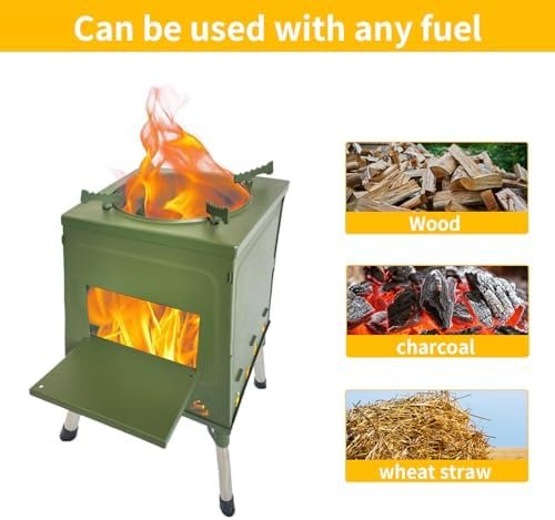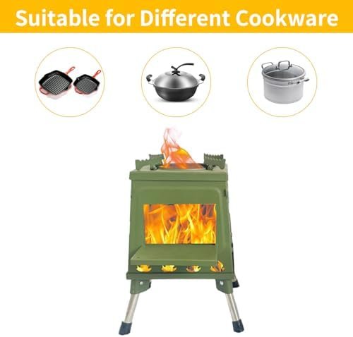 ★🔥Wide Applications: This lightweight camping wood stove is suitable for different fuel sources like wood, straw, etc. Perfect for picnic, BBQ, hiking, camping, outdoor, backpacking etc. Suitable for BBQ, boiling and cooking in small spaces such as tents, patio, tiny homes and more.