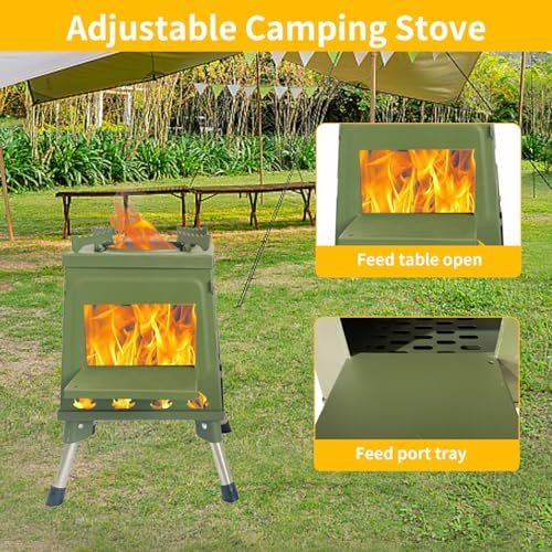 ★🔥Adjustable Designs: All pot holders of this wood camp stove are adjustable, allowing the stove top to match various cookware. The bottom of stove legs are rotatable and foldable to meet different requirements.