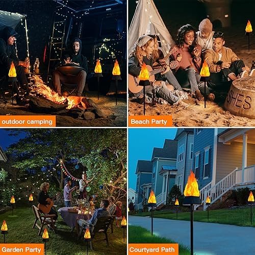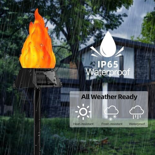 【PLUG-AND-PLAY】 Easy to install, no wiring required.Get the torch connected with the stake and spike, The outdoor solar lights for yard is then placed and inserted into the soil and ready for use. It also allows you to move them around whenever you want.