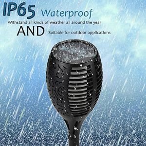 AUTO ON/OFF: The solar torches lights work dusk to dawn. They can work 10-12 hours. They are weatherproof and withstand all weather conditions, such as snow ,raining, thunder and lightning.