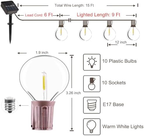【Multiple Lighting Options】Our G50 solar lights offer two lighting modes – flashing and steady lighting options that make it easy to enhance the decorative effect of your garden. Whether you want a festive or relaxing mood, our outdoor 15Ft string lights have got you covered.