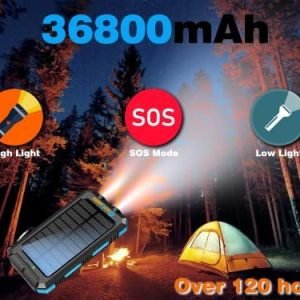⚡【Grade A+ 36800mAh Battery & anti-explosion】⚡This Solar Power Bank has built-in Grade A+ 36800mAh Lithium polymer battery, It is anti-explosion, lightweight and durable. The solar charger has a high-performance solar panel and have more than 3000 times full cycle recharging lifetime, as 36800mAh capacity power stored in high-density lithium polymer battery, so the solar charger power bank has mini size and lightweight.