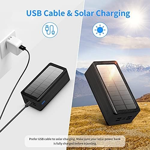 Solar Charger Power Bank: The solar panel can collect solar energy all day under direct sunlight. Please kindly note that solar charging is an additional feature and please take the solar charging option as a backup solution while other power sources are not available. The solar charging function may be not efficient enough in cloudy days, rainy days and under weak sun day. Please make sure the solar charger power bank is fully charged before your trips.
