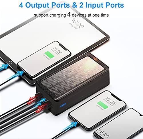 50000mAh big capacitySolar/ USB cable charging4 output ports & 2 input portsInput: 5V 2.0AOutput: DC 5V 2.1ABright light/ low light/ SOSLED indicatorsSafe charging speed
