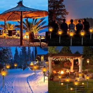 🔥【Solar Torches with Flickering Flame】4 pack small solar lights outdoor casts a warm & lovely glow like flickering flame, and it’s a safe alternative to the real “flames”. Solar torch lights are perfect outdoor decorations for patio, garden, porch, yard, pathway, making your yard stand out in the community.