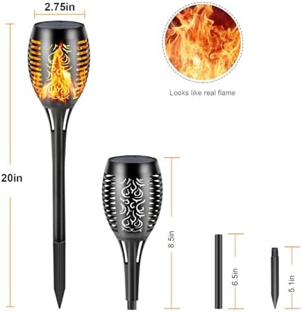 【Flickering Flame Light Design】 Gorgeous dancing flames, lifelike flame effect makes our solar torch light exudes a charming and romantic atmosphere, perfect for lover’s date, prom party, holiday decoration.