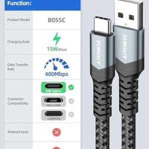 【You will get】2Pack 3 FT USB to USB C Cable; Enjoy 12-Months Warranty. If any question, please feel free to email us via Amazon email or SUNGUY Customer Support email.