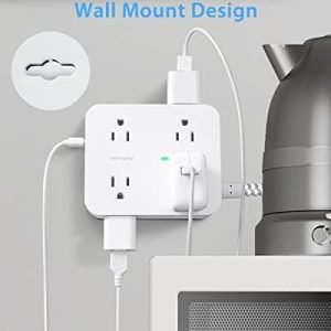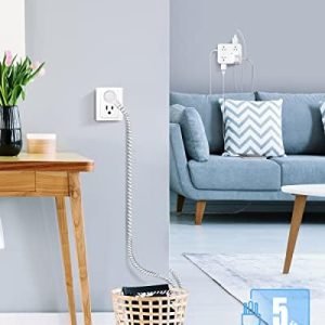 Wall mount design and right angle flat plug with 5ft extension cord can allow you install this power strip on various places, its a great desk or wall usb charging station for phone, tablet, PC, TV and more.