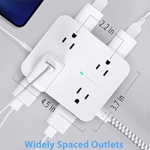 8 WIDE AC outlets with 2.2 inches space in between and 4 USB high-speed charging ports. Charge and power everything from major appliances to your phone.