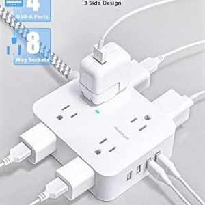 3 Side design 8 widely spaced AC outlets can fit for larger adapters without blocking each other. The compact design saves more space, suitable for the home, office, and college dorm room