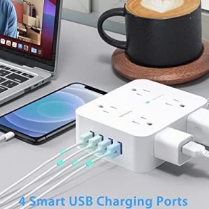 【12 IN 1 Power Strip with USB】- The 3-side power strip surge protector with 8AC widely outlets and 4 USB charging ports(Total 5V/3.1A) can power up to 12 devices simultaneously. With built in Smart IC technology, the usb port can auto detect and deliver appropriate current to your devices, each port up to 5V/2.4A max