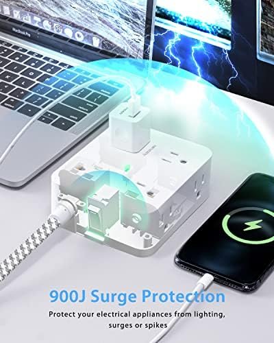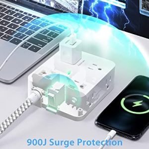 【Overload Surge Protection】- The surge protector power strip with overload protection protects your electrical appliances from lighting, surges or spikes. The minimum energy-absorbing capacity of 900 Joules. Lighted on/off switch with integrated circuit breaker for overload protection of all outlets.(The “Surge Protected” indicator light on to show your devices are protected)