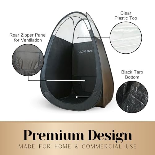 PREMIUM MATERIAL & DURABILITY: Our spray tan booth is constructed with the highest quality, tear-resistant materials. It’s engineered to endure repeated use, ensuring you’ll enjoy countless sessions without wear and tear. The clear top allows light in while still creating privacy and a mess free application.