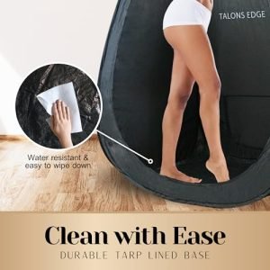 NO MESS, NO STRESS TANNING: Say goodbye to messy tanning sessions. Our tanning tent ensures a clean and seamless tan application every time. The tarp lined bottom is easy to wipe down and keep tidy, so you can enjoy your glow without post-tanning chores.