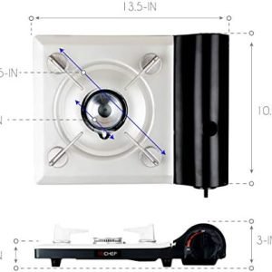 Automatic Safety Stop – Advanced regulator design shuts off the flow of butane which extinguishes the flame if the pressure in the canister rises to unsafe levels. (A butane gas canister is not included)
