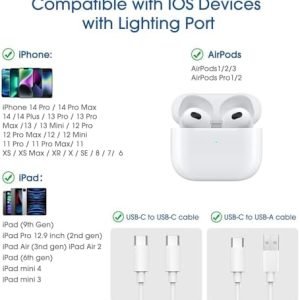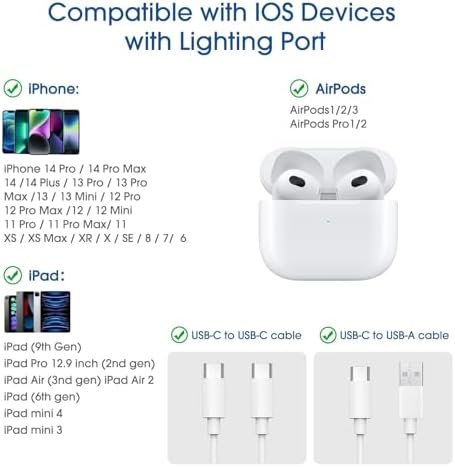 Compatible ONLY✅ with iPhone 14, 13, 12, 11/11 Pro/11 Pro Max, Xs/Xs Max/Xr, X/8/8 Plus, iPhone Se/New Se/7/7 Plus/6/6 Plus/6s/6s Plus/5/5c/5s, iPad Pro 10.5′, iPad Pro 12.9′, iPad 5, iPad 4, iPad Air 2, iPad Air, iPad Mini 3, iPad Mini 2, iPad Mini Retina, iPod Nano 7, iPod Touch 5, AirPods, etc.