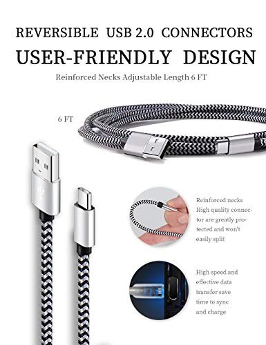 6 Ft extra long usb c cable ensure more convenient to get in bedroom, sofa, office, Work or travel, even in the back seat of a car.
