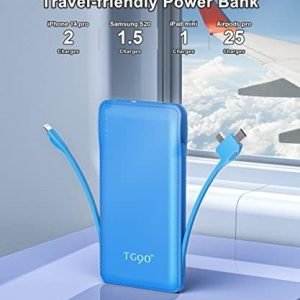【Power Bank with Built in Cords】 Multifunctional portable phone charger with built-in USB-C charging cable,micro USB cable and other cable, which can directly charge all your mobile phones and other smart devices, do not need to carry any extra charging cables for your devices any more.