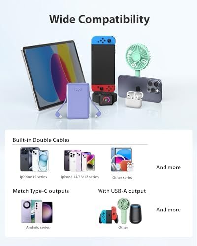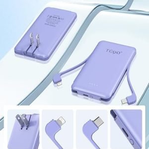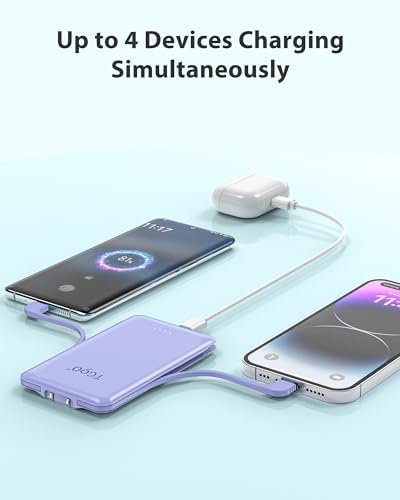 Simultaneous Charging: With 3 outputs,2 built-in cables and a USB C in/out port, the charging bank can power your devices at the same time, greatly improving charging efficiency. Besides, multiple interface types are widely compatible with iPhone15/14/13/15Pro/14Pro/15Pro Max, etc, and most Android phones.