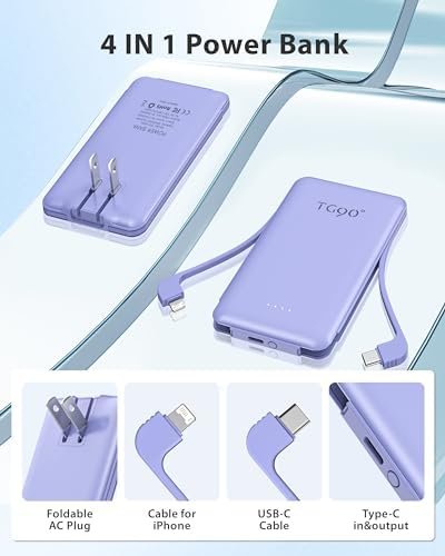 Portable Charger with Built-in AC Wall Plug and Cables: Battery pack can charge the devices with the built-in cable and recharge itself directly from the wall outlet via the ac plug. It can operate independently, getting rid of the bulky adapter and messy cables.