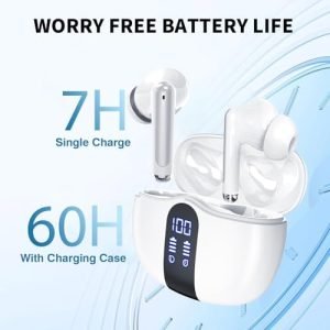 MAKE YOUR MUSIC NEVER STOP: Single earbud has up to 7 hours listening time, you can enjoy 60H music time in total via using in turn, , allowing you to enjoy uninterrupted entertainment while traveling. No need to worry about batteries. Dual digital LED power display outside of the case is to show the power level for charging case