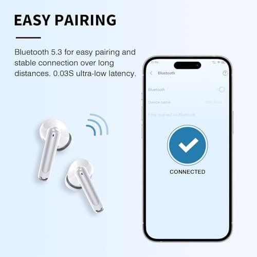 WIRELESS & EASY TO USE: Featuring advanced Bluetooth 5.3 technology, the Bluetooth earbuds provide a super-stable, consistent, and ultra-low latency wireless connection as long as you are within 50 feet of the paired device. The earbuds can record information from up to 10 paired devices for a one-step connection with no need to re-pair!