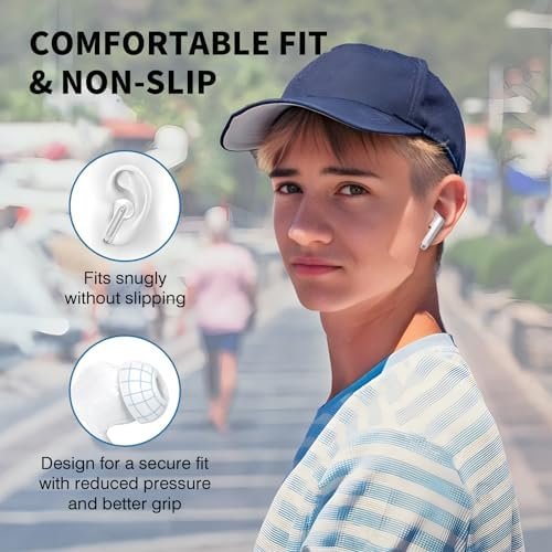 CUSTOMIZABLE WEARING COMFORT: The wireless earbuds have three pairs of silicone earbud tips (S, M, L) to fit more people’s ear cannals and provide all-day comfort. Silicone earbuds create an acoustic seal that helps isolate noise and hold the headphones in place.
