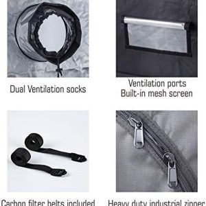 HIGH QUALITY: has all stable construction, 600D oxford cloth outside and 96% highly reflective waterproof diamond Mylar inside, with exterior zippers design ensure safety use and easy to set up. And it also has multiple vents to accommodate fans and filter.