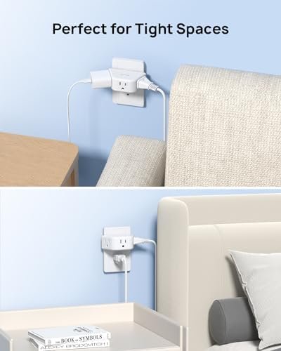 【Compact and Portable】The small size of 3.48 x 1.73 x 1.42 inches is perfect for your business trip or travel. This mini wall plug adapter can save you space, especially suitable for tight spaces, like behind the couch, behind furniture, and so on. Keep less tangle of cords in the bedroom, bathroom, dorm, office, and living room.