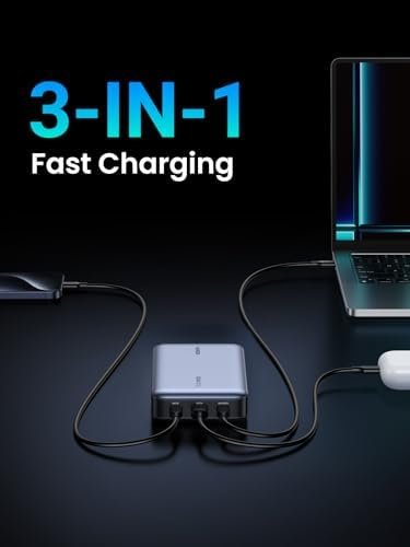 3-in-1 Fast Charging: Equipped with 2 USB C ports(USB C1 100W+USB C2 30W) and one 22.5W USB A port, this powerful 100W fast charging power supply can charge 3 devices at the same time, Macbook Pro 16″ can be charged to 42% in just 30 minutes via OUT1, and iPhone 15 can be charged to 60% in 30 minutes, less time to wait, more time to enjoy