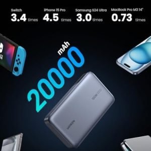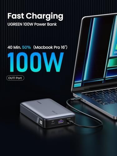 20000mAh Huge Capacity: UGREEN usb c battery pack can meet 5-7 days of battery life, fully charge iPhone 15 Pro up to 4.5 times and MacBook Air 15” up to 1.1 times, ideal for traveling, business trips, camping, or other outdoor activities, the digital LED screen shows the remaining battery level, status at a glance, no more guessing based on a few small LEDs