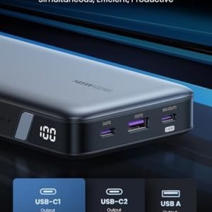 Power Capacity: 25,000mAh/3.6V/90Wh(TYP) Indicator: LED Digital Display USB-C1 Output: 5V-3A 9V-3A 12V-3A 15V-3A 20V-5A 28V-5A 140W Max USB-C2 Output: 5V-3A 9V-3A 12V-3A 15V-3A 20V-3.25A 65W Max USB-C1 Input: 5V-3A 9V-3A 12V-3A 15V-3A 20V-3.25A 65W Max USB-A Output: 5V-3A 9V-2A 12V-1.5A 10V-2.25A 22.5W Max USB-C1 Input Protocols: PD3.1/PPSPD3.0/PD2.0/FCP/AFC/BC1.2/5V Adaptive USB-C1/C2 Output Protocols: PD3.0/PD2.0/QC3.0/QC2.0/FCP/AFC/APPLE 5V2.4A/BC1.2/5V Adaptive/PPS USB-A Output Protocols: SCP(10V-2.25A)/QC3.0/QC2.0/FCP/AFC/APPLE 5V2.4A/BC1.2/5V Adaptive Compatibility: MacBook Pro 13”/ MacBook Pro 14″ / MacBook Pro 15”/MacBook Pro 16”/ MacBook Air Series; HP Spectre/ Zbook; Google Pixelbook; Dell/Google Pixelbook/Microsoft Surface Book/ThinkPad and more; Compatibility: iPhone 15/iPhone 15 Plus/iPhone 15 Pro/iPhone 15 Pro Max/iPhone 14 Series/iPhone 13 Series/iPhone 12 /11/ XS/ XR Series/ iPhone SE/ 8 Plus/ 8; Samsung Galaxy S24/S23 Ultra/ S22/ S21+/ S20/ Note Series, Galaxy Z Fold/ Z Flip; Google Pixel 6/ 5/ Pixel /LG and more; Compatibility: iPad Pro 12.9”/ iPad Pro 10.5”/ iPad Pro 11”/ iPad Mini Series/ iPad Air Series; Oneplus 9 Pro/9/8T/8 Pro/8, Moto G100/ Edge 20 Pro, Nexus 5X/ 6P, Sony Xperia Pro; AirPods Pro, Nintendo Switch, Oculus, and More. NOTE: Generally, we suggest you use the USB C port to charge Apple watch. If you want to to use the USB A port, only the C1 and A port can be used simultaneously. Please unplug the USB C to Lightning cable when not in use. NOTE: For the first usage after receiving it, please fully recharge the power bank, drain it out afterward, and then fully recharge it without interruption. You must use a PD wall charger and USB C to C cable when the battery is 0% and there is no display, otherwise, it won’t be recharged.