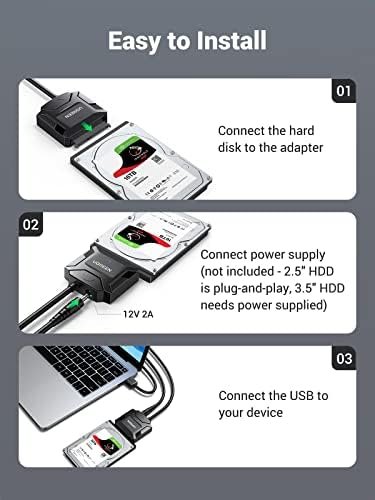 12V 2A Power Adapter Included: This SATA to USB cable is equipped with a DC-Jack port and comes with a 12V/2A Power Adapter, which ensures enough power supply for a 3.5″ hard dr