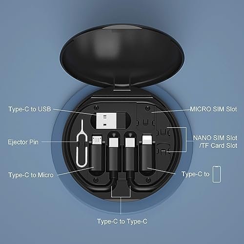 SIM CARD HOLDER: This USB C to lighting cable case also has a slot to securely store your SIM cards and a SIM extractor to pop it out when you need to switch SIM cards on your phone, travel with ease and convenience with this multi charging cable