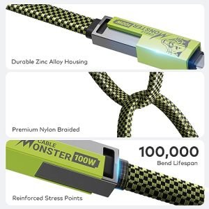 Built to Last USB-C Cable: Combined with zinc alloy and nylon braided for a 100,000-bend lifespan, the tough usb-c cable is durable both inside and out. Whether you need to wrap it around your device or tuck it away neatly, our resilient and reliable usb-c cable can handle it all.