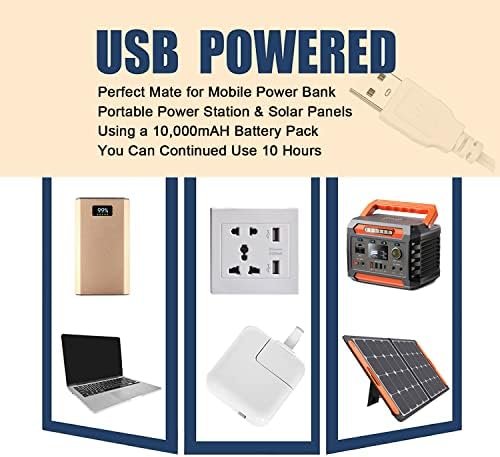 Lightweight and Portable Design – Weighs only 4.2 ozCan be Used Indoors & Outdoors – Doesn’t Make Any NoiseChoose from 3 Different Colors Light-warm, natural, coldChoose from 10 Different Brightness Modes- 1~10 gradeSuper bright 6000 maximum lumens output6.6 feet of line enough to extend5V USB charging design makes application scenarios more extensive