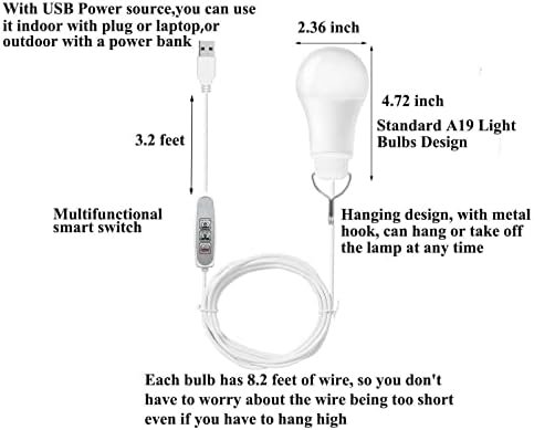 【Portable&Hanging】With metal hooks, you can hang or take down the lamp anytime, anywhere,used to deal with a variety of emergency,camping light,car light,fishing,Boat,can also be used for home daily lighting, can be used as a night light, desk light, work light,Garden,Barbecue