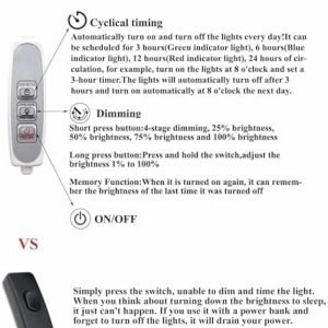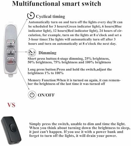4-stage dimming and Cyclical timing.It not only can adjust the brightness you like, but also has a cyclical timing function.It solves the problem of forgetting to turn on and off the light.