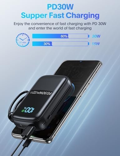 Fast charger: Portable charger high speed 22.5W combines the most advanced PD 30W fast charging technologies can charge your iPhone incredibly fast from 0 to 60% in just 30 minutes, nearly 2X faster than other traditional chargers.
