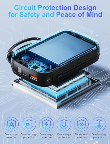 Safety performance Portable Charger: Battery pack equipped with high quality smart chip to extend the life of portable charger and help protect your devices from over-temperature, overcharge, short circuit. Multi-protection security system to provide complete protection for you and your devices.