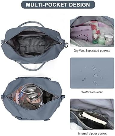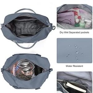 Dry Wet Separated Tote Gym Bag: High-density waterproof wet pocket in the main compartment, which can help you to separate dry items and wet items, if you have wet clothes or a towel, you can put it in this crossbody bag.