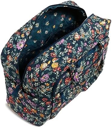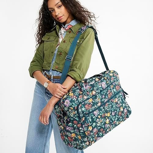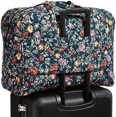 Exterior features one slip and two zip pockets. Interior features five mesh pockets. Trolley sleeve. Removable strap. Zip closures. Capacity 52 L.. Remove strap and close all zippers before laundering; machine wash cold, gentle cycle, only non-chlorine bleach when needed; line dry. Vera Bradley is known for our travel bags for women and men alike with our duffel bags for traveling. We offer cosmetic travel bag, make up travel bag, toiletry travel bag for women, duffle bag for men, travel bags for men, travel duffel bags for women, duffle bag for travel, rolling duffle bag with wheels, small duffle bag, travel duffel bags, and travel bags for packing. Our assortment of travel bags includes travel essentials like duffels, overnight bags, lugagge, weekender bags, make up organizers, travel organizers, luggage tags, and more!