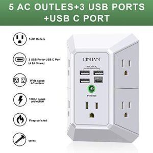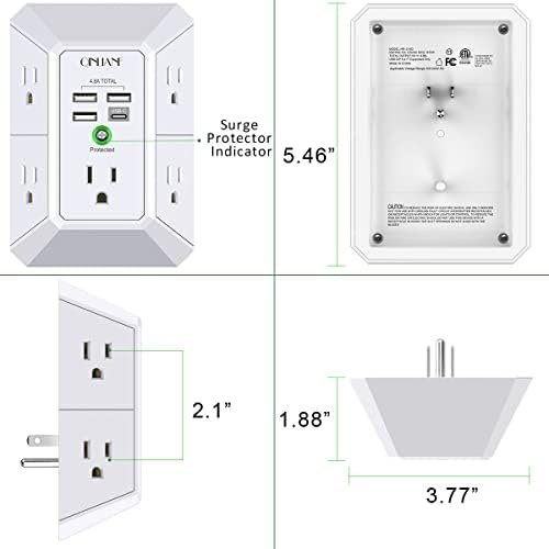 【 Multi Function USB Outlet】- Securing onto the wall design. Fit duplex outlet perfectly, just plug in to use. You get 5 AC outlet splitter (3 sides) with wide space in between; 4 USB charger ports; using the screw at the middle to secure it onto the wall for duplex outlet, so it is not pulled out when pulling the plugged in devices and loss power. Note: this works on duplex outlet only, other types of outlet like GFCI outlet cannot be secured onto the wall.Best Ideal Stocking Stuffers for Adults.