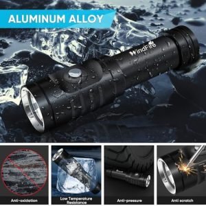 PX8 WATERPROOF FLASHLIGHT: The underwater waterproof flashlights for diving is made of aviation grade high quality aluminum material, corrosion resistance, drop-resistant, compression-resistant, professional IPX8 waterproof rating, the scuba flashlight can be used for underwater 80 meters diving activities.