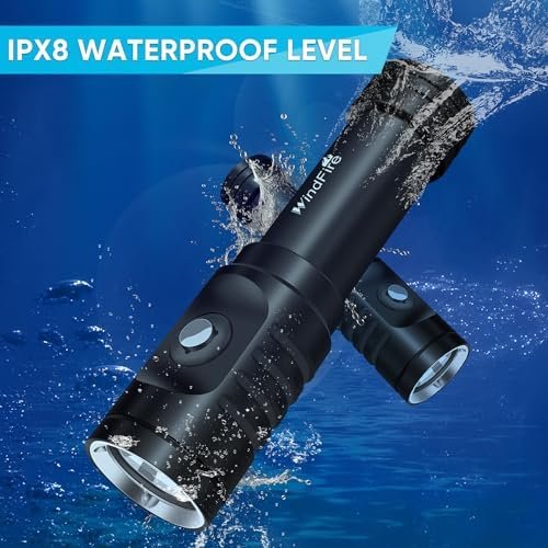 Why choose this Safety Diving Lights?As people’s interest in the mysterious ocean intensifies, a lighting tool with good waterproof performance is a necessary diving accessory for divers.WINDIRE Dive light is made of aviation grade aluminum alloy, it has excellent performance in corrosion resistance, waterproofing, scratch resistance, and pressure resistance, making it very suitable for fishing, diving photography, underwater salvage, etc,.The 5500K bright and focused scuba diving flashlight is perfect for night diving, as it can illuminate farther areas and provide early warning of danger for deep-sea divers.An underwater flashlight with a battery display function is very important for any diving enthusiast, and you don’t need to worry about suddenly running out of power.3 lighting modes (High – Low – SOS) are used for different environmental requirements, SOS can be used as a signal light. The underwater light can be used for 3 hours in high mode mode when fully charged.Whether it’s as a gift for family and friends or for personal use, WINDIRE diving flashlights are an ideal choice.