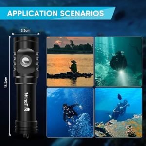 IDEAL DIVING ACCESSORIES: This scuba dive light is ideal for diving, swimming, fishing, caving, sailing, camping, hiking, snorkeling, etc. WINDFIRE scuba dive flashlight equipped with a storage, easy to carry. It is the great addition for your scuba diving accessories. In addition, it can also be used outdoors, such as camping, hiking, emergency, etc.